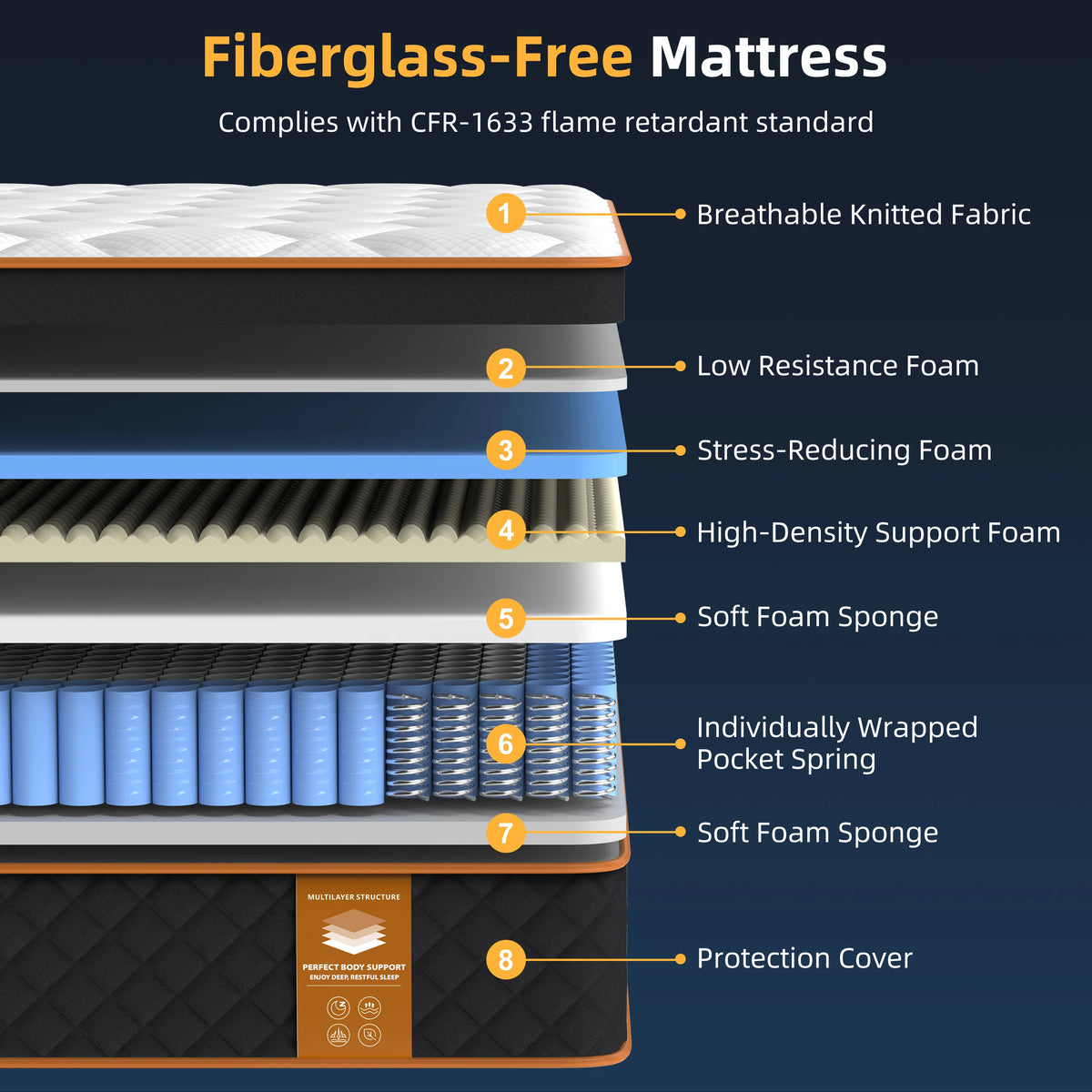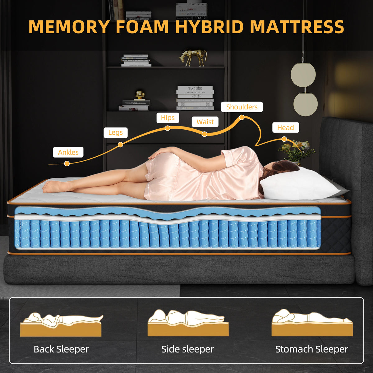 180x200x25cm Pocket Spring Mattress Memory Foam Bed