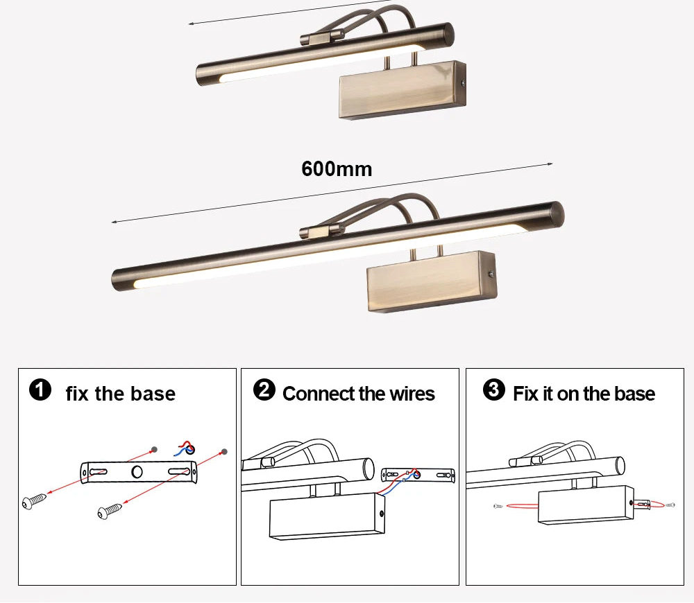 New Led Bathroom Wall Light - Black 300mm / Cool White(5500-7000K)