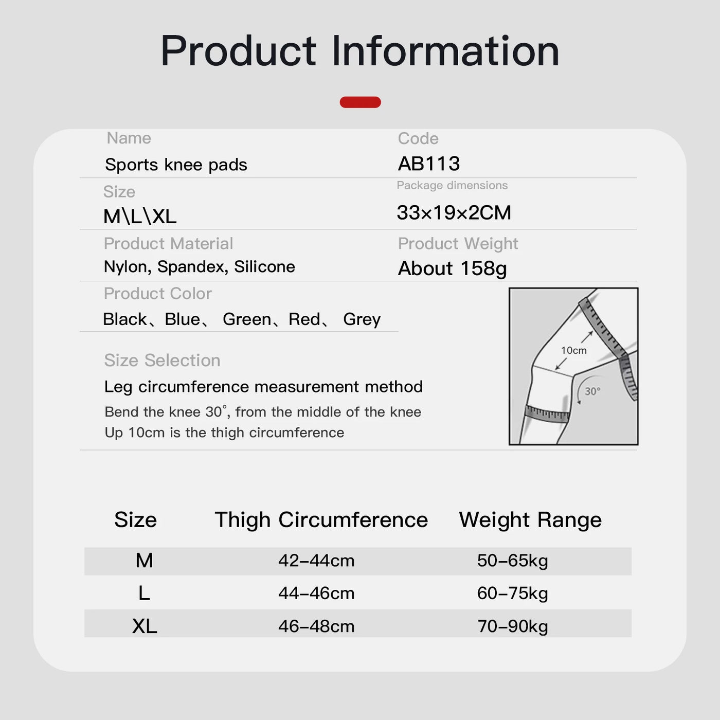 1 Pcs Compression Knee Support - AB080-RD / M